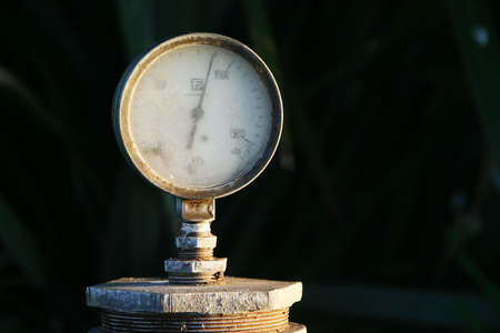 Pressure gauge in oil and gas production process for monitor condition, The gauge for measure in industry job, Industry background and close up gauge.