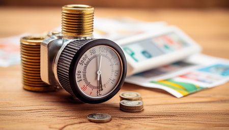 Close-up of an industrial manometer showing gas. Generative AI