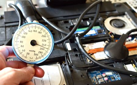 Repair of electronic systems and laptop components. Diagnostics of the hard disk, processor, cooling system, motherboard, memory modules and other systems of the computer and software - Image