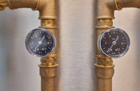 A pressure gauge showing the water pressure in the pipeline system in a private house.