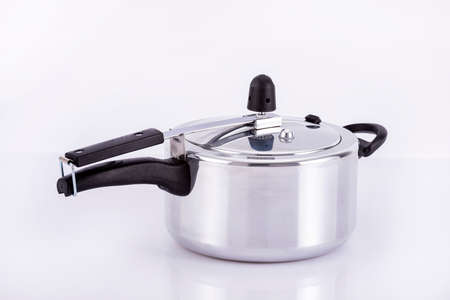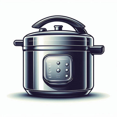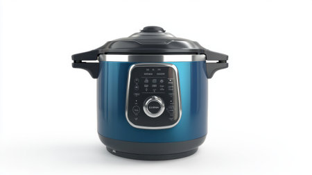 A modern electric pressure cooker with a polished finish, isolated on white for versatile cooking appliance promotions.