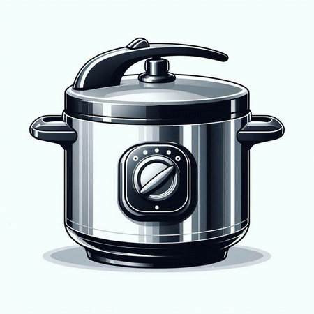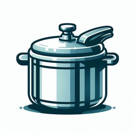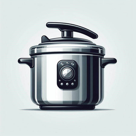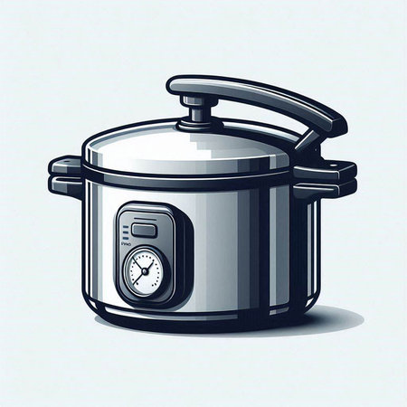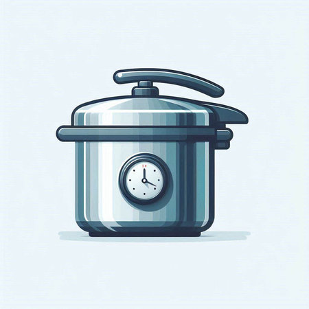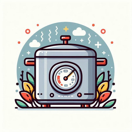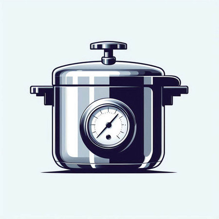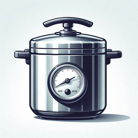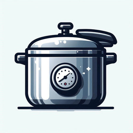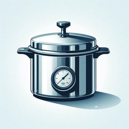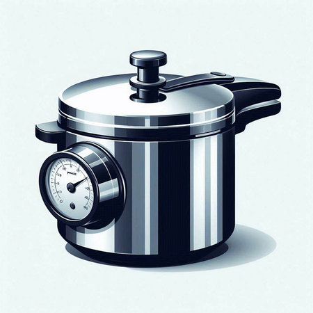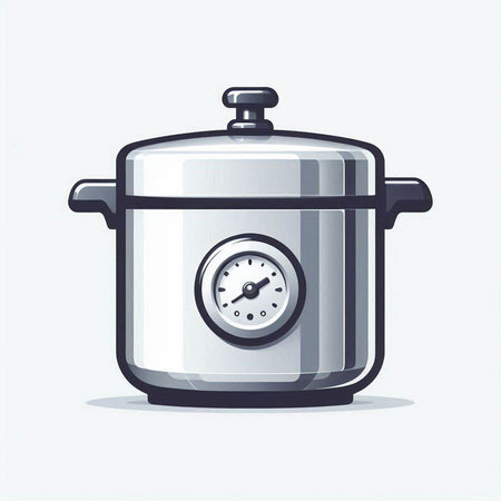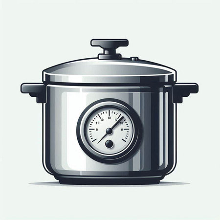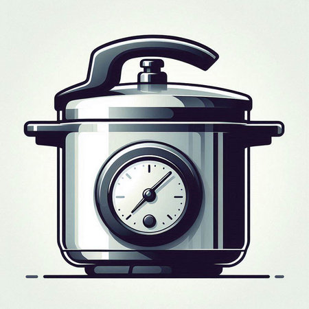 Illustration of a cooking pot with a pressure gauge on a gray background