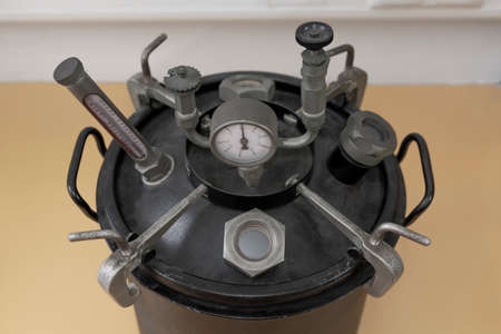 Old labor pharmaceutical autoclave, machine used to carry out industrial and scientific processes requiring elevated temperature and pressure .