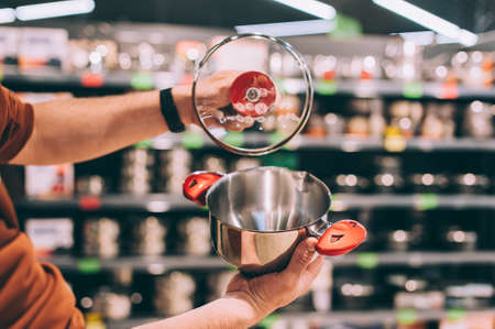 Kitchen multi cookers from different manufacturers on a shelf in a retail store. Minsk, Belarus, 2023