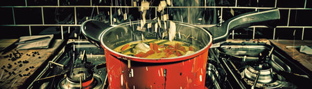 Preparing hot soups and stews, bubbling pots, the aroma of comfort, winter meals 72