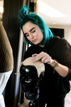 Cape Town, South Africa - April 19, 2021: Team Building workshop for hairdressers making clay sculptures of hair styles on mannequin
