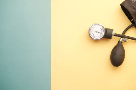 blood pressure machine on yellow background