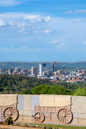 View of downtown Pretoria with a memorial to the pioneers of South Africa. Pretoria from the observation deck of the