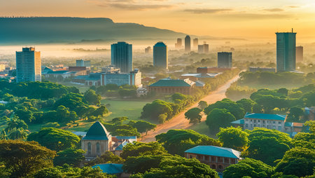 stunning panorama of the city of Yaounde, the capital of Cameroon, on a sunny summer day