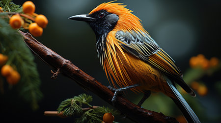A Bird of Paradise Perched on a Tree Branch in the Highland Forest AI Generative