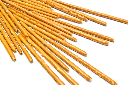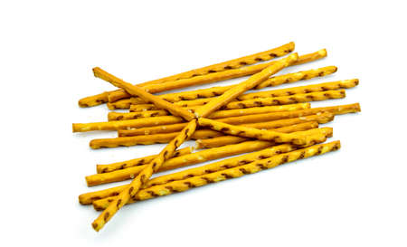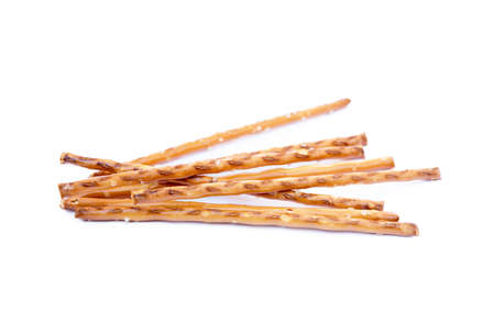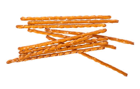 Salt cracked pretzel sticks isolated on white background
