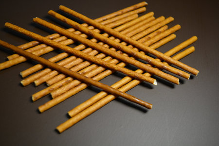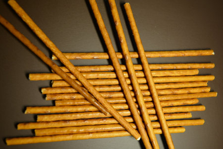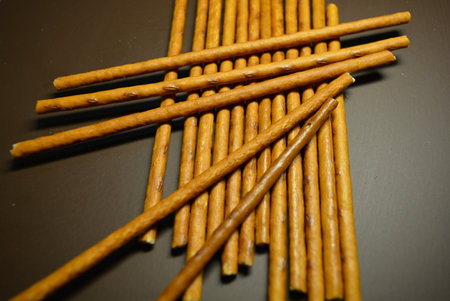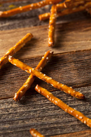 salt coated delicious looking snack sticks made of pretzels