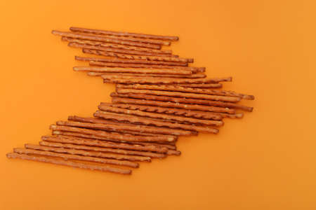 Many salted sticks over a orange background.