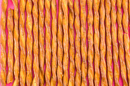Crackers sticks close up background. Top view
