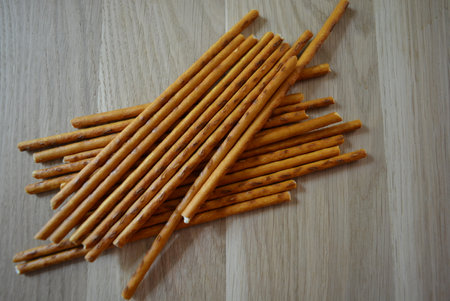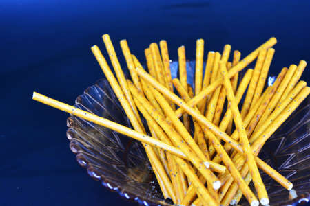 Salted bread sticks, salted straw snack. Crispy bread straw.