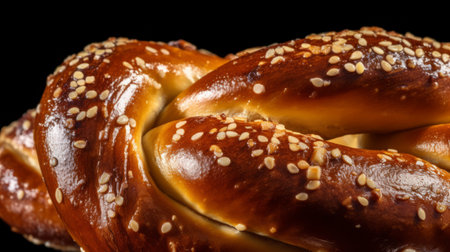 Savory pretzels with a golden-brown hue and sesame seeds are casually scattered across a black surface, perfect for enjoying as a snack or party treat regardless of the occasion.