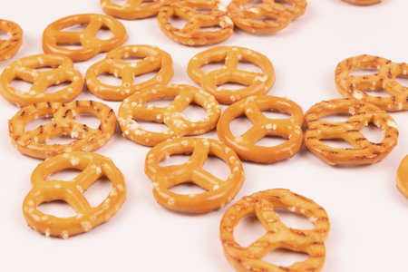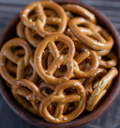 Mini pretzels with salt close-up.