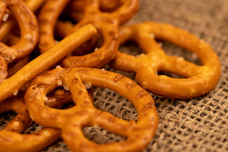 Closeup pretzels on a table. Background.