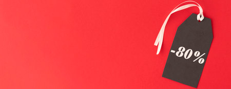 banner with Black Friday. Sale tag over red background Copy space.