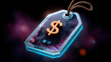 This image features a glowing price tag with a dollar sign on a dark background, ideal for digital marketing, finance content, and e-commerce visuals.