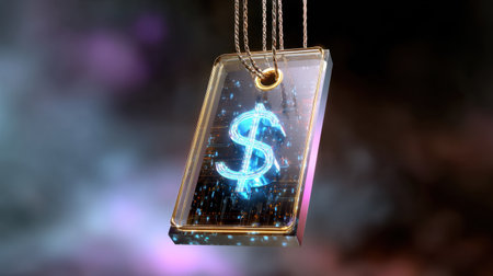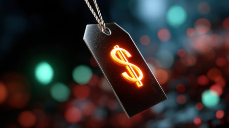A visually striking image of a glowing dollar sign tag, suspended in mid-air against a vibrant abstract background, ideal for financial themes.