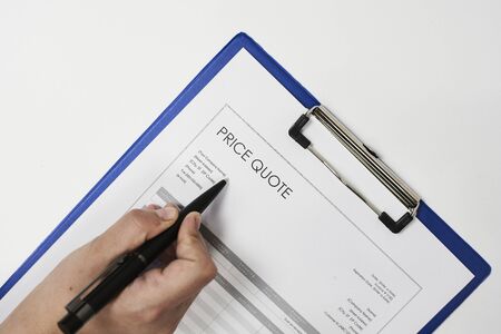 Top view of pens, calculator, money banknote and notebook written with PRICE VS COST