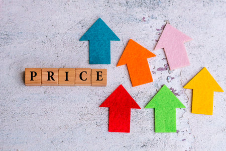Profit concept with colorful paper arrows pointing up and word PRICE