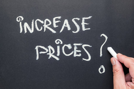 Closeup hand writing text on chalkboard as the concept of how, and when to increase prices