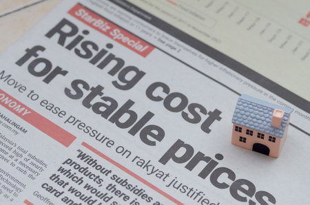 Rising Costs and Economic Pressure on Housing: Miniature House on Newspaper