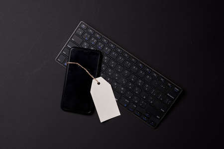 Black friday concept with mobile phone and keyboard on black