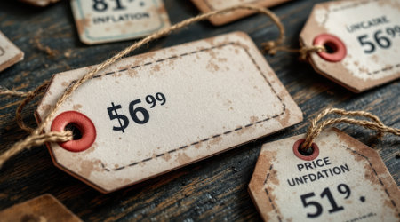 Price tags on wooden surface symbolize small business recovery with vintage style
