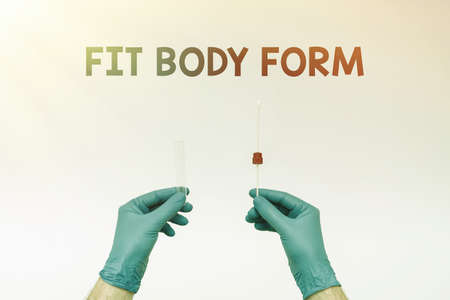 Hand writing sign Fit Body Form. Conceptual photo refers to a body that perfectly align of shape and contour Research Scientist Presenting New Medicine, Researching Preventive Measure