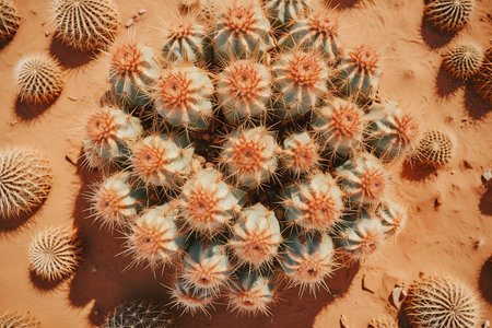 Top view of exotic cactus in desert