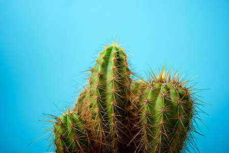 Blue colored cactus texture, green nature background. Tropical exotic natural texture with spines