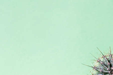 Cactus background with spikes. Top view. Copyspace. Selective focus.
