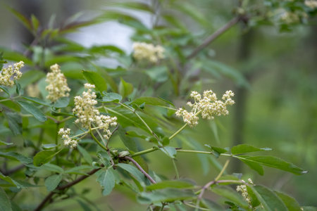 Sambuca Nigra berries elderberries growing in a forest in Poland
