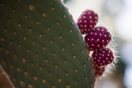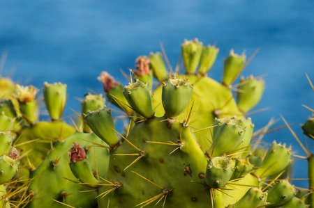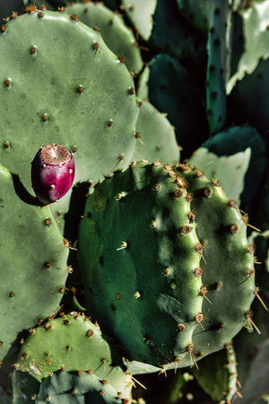Prickly pear. Barbary fig. Moroccan cactus. Close- up. Nature wallpaper background