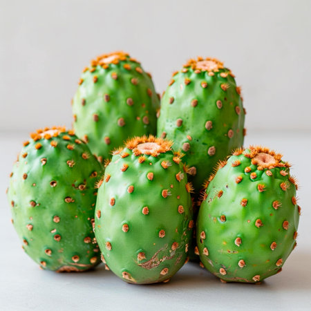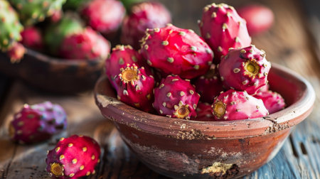 A vibrant arrangement of ripe cactus fruits showcases their colorful hues and spiky textures. Perfect for healthy eating, botanical themes, and culinary uses.