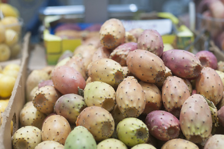 Prickly pears of the variety called bastardoni on the table of a street seller in Catania, Italy.