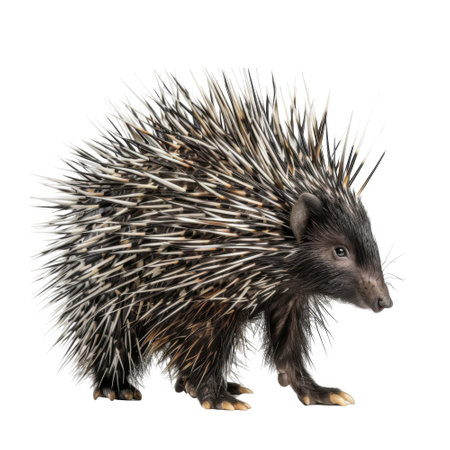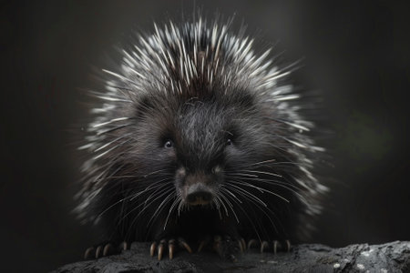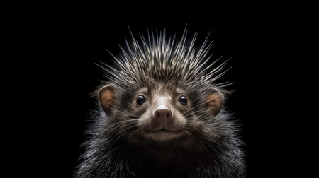 A Close-up of a Spiky Porcupine with Black Background