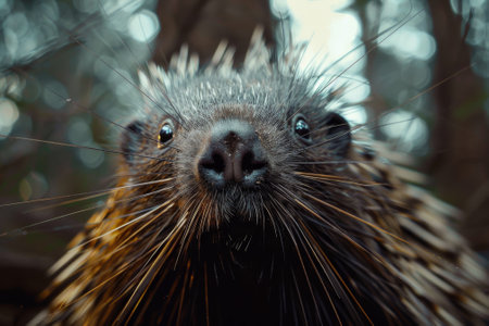 close up of a Brazilian porcupine (Coendou prehensilis) at habitat
