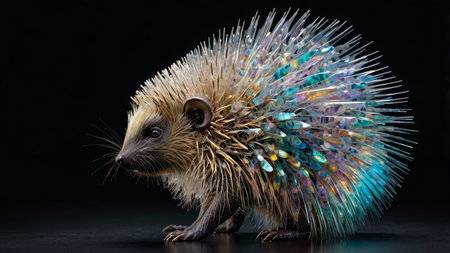 Hedgehog on a black background with multicolored lights.