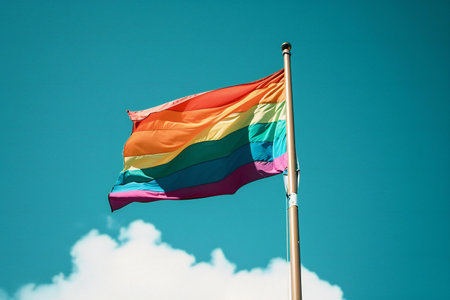 Colorful LGBT rainbow flag as a symbol of love, acceptance, and celebration of diversity in the LGBTQ community's equality movement