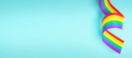 Lgbt ribbon on blue background. Homesexuality, lesbian and gay symbol. 3d rendering.