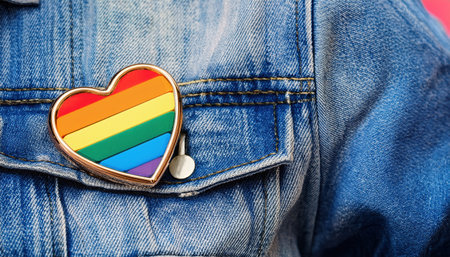 A heart shaped pin on a denim jacket symbolizes pride and unity in the community.