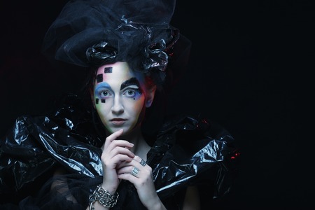 High fashion model woman. Art multicolored skin girl face portrait closeup. Glamour professional makeup
