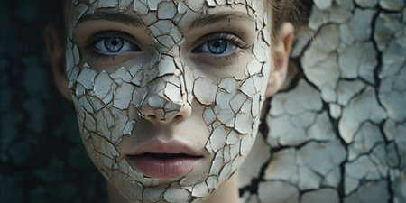 Portrait of a girl with very dry skin. Theme of cosmetology. Generative AI