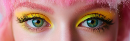 Vibrant eye makeup with bold yellow eyeliner and green eyes