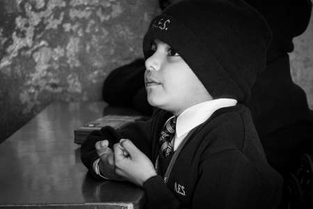 Kathmandu, Nepal - February 4, 2020: School students sitting in a classroom listening to the teacher in Kathmandu, Nepal.
