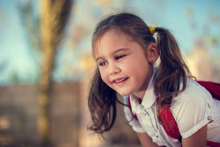 Back to school. Happy pupil girl outdoor. Children and education concept